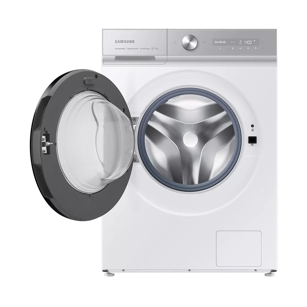 The Samsung Bespoke AI 12kg Front Load Washing Machine in white is a high-tech washing machine designed to make laundry day more efficient and effortless.