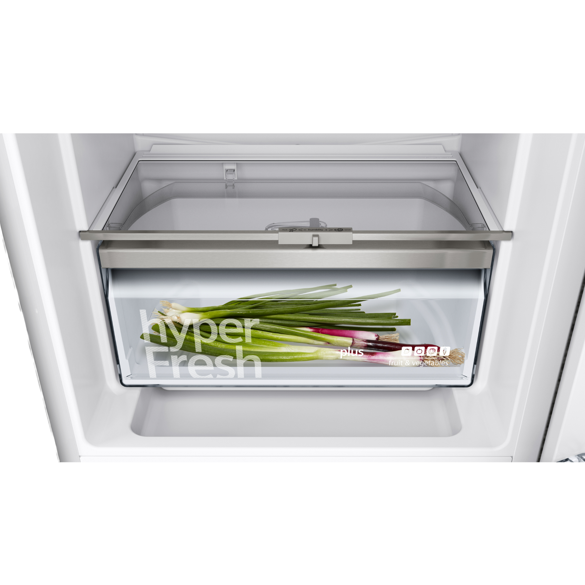 - The hydroFresh Box with adjustable humidity keeps fruit and vegetables fresh up to 2 times longer.